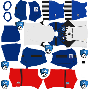 In this 512×512 Hamburger SV dls kits pack you will get home, away, and the third kit for the whole Hamburger SV club and also for the goalkeeper. Goalkeeper’s kit is always unique from the whole team to indicate his role in the team. Hamburger SV dls kit home edition is in blue and white with the Adidas logo. Hamburger SV away kit contains blue and black color with the Adidas. Adidas is a kit designer and provider of Hamburger SV. The club logo is on the bottom right corner of the jersey.